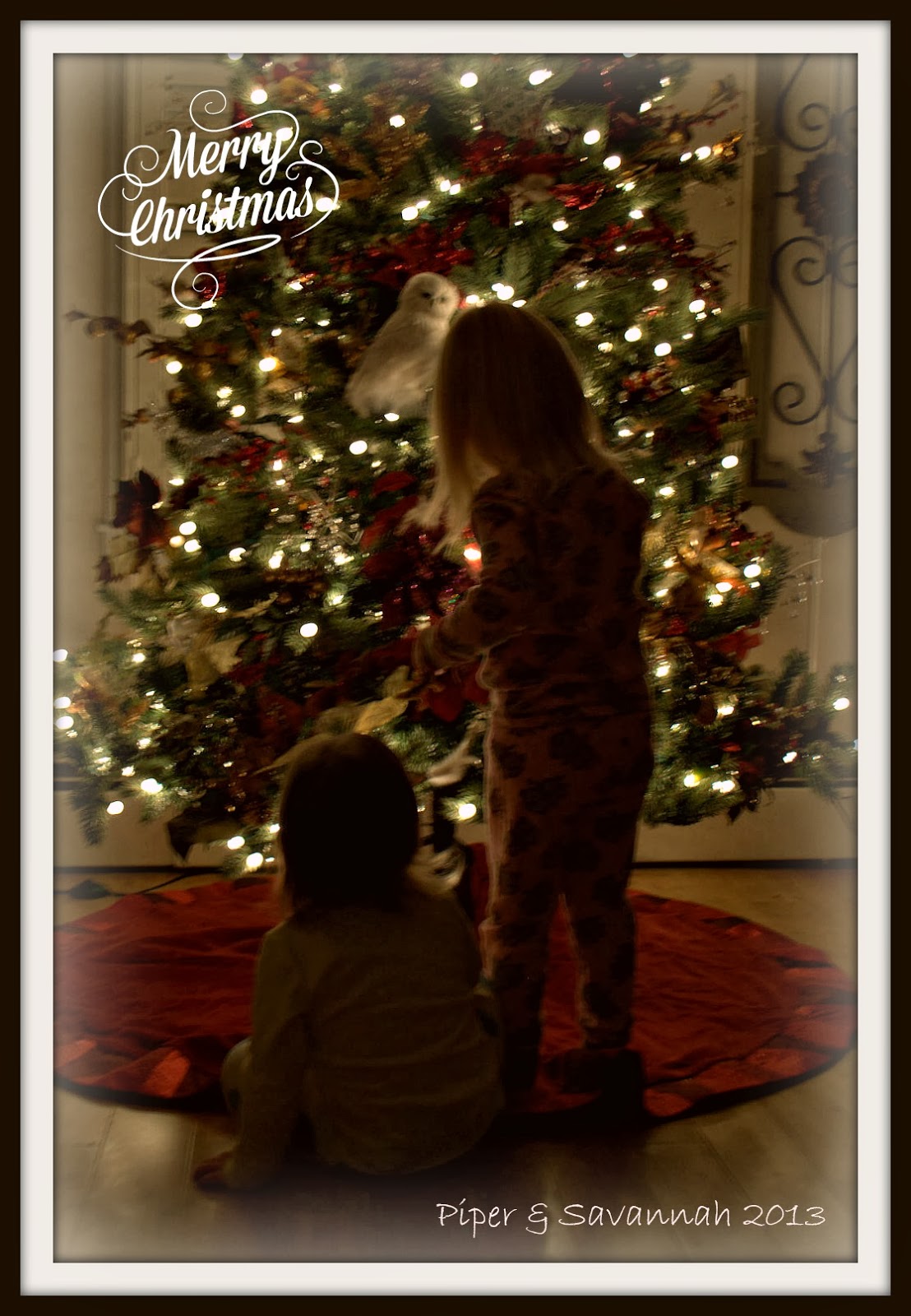 Well I am still not done decorating my dining room for Christmas.  I need napkins, glasses and flatware on the table.  When I place all that I will be done....I think.  My kids wonder why I decorate so much and i truly do not know other than I just love it.  Erica and the girls came over tonight after ballet class and the girls took baths here and I got a chance to take their picture in front of one of my trees.  It have zero presents wrapped yet.  I am so behind in that department.  I love the photos on pinterest where they are very dark and just the lights of the tree illuminate the photo.  I really like artsy photography.  To me photography is an art form.  One that I am very passionate about.  I am forever more taking photos of things that speak to me.  I am working on some of different angles of my Christmas trees.  There are some parts I just love of these trees.  Hopefully by December 25th I will be done decorating and can actually sit back and sip coffee and enjoy all the twinkling lights and such!!  Then I can start taking it all down until next year!!!